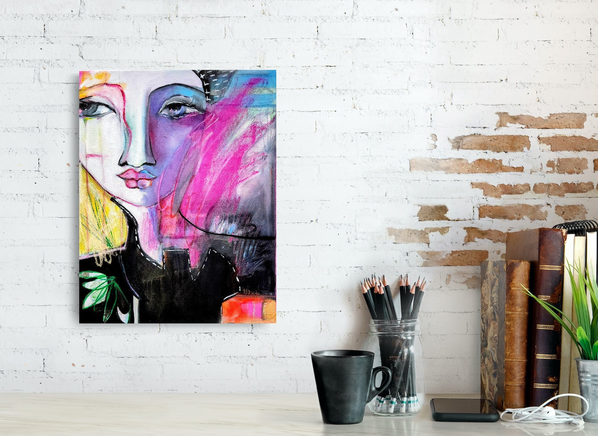 12" inches wide by 14" inches high by 1.5" inches deep on canvas Ready to hang, no frame necessary.