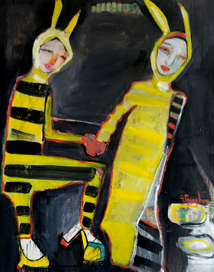 Original painting "Whatever Barb, You Know Onsie's are Iconic" oil on birch panel, 8" x 10"