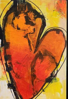 Original painting "Yellow Skateboard Heart" oil on birch panels, 4" x 6"