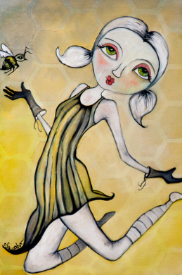 Original painting "Mrs. Trouble", oil on birch panel, 6" x 12"
